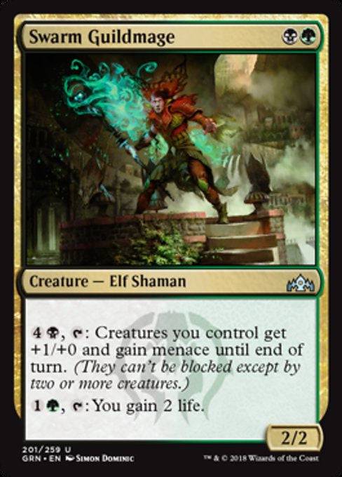 4B, T: Creatures you control get +1/+0 and gain menace until end of turn.(They can't be blocked except by two or more creatures.) 1G, T: You gain 2 life.