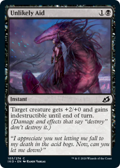 Target creature gets +2/+0 and gains indestructible until end of turn. (Damage and effects that say "destroy" don't destroy it.)
